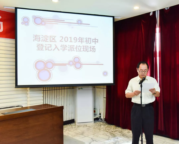 在国信公证处公证员的现场公证下,海淀区副区长刘圣国和区人大、海淀教育两委的领导,以及学区管理中心、部分中小学、家长代表共同见证了此次登记入学派位的全过程。