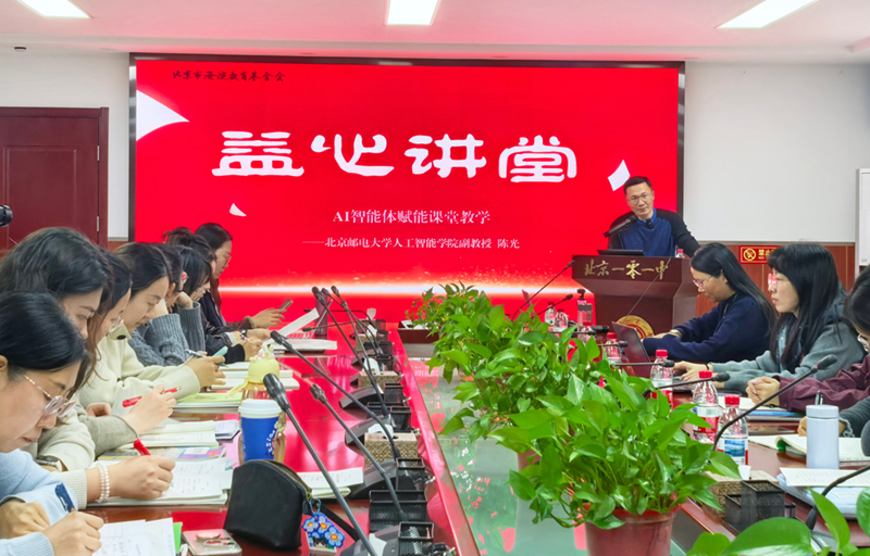 2026年3月5日,“益心讲堂”走进一零一中学双榆树校区,北京邮电大学教授陈光为42名中学教师带来“AI智能体赋能课堂教学”主题讲座。